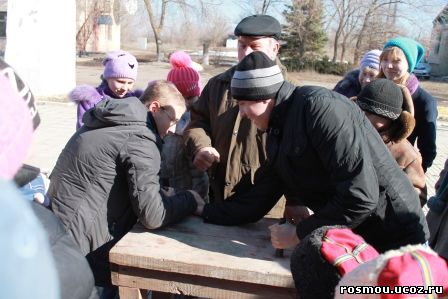Ребята приняли участие в играх: «Петушиные бои», «Бег в мешках», померились силой в «Армреслинге», ходьбе на ходулях. Самыми активными участниками праздника были: А.Филатов, З.Сорокин, А.Наумов, И.Токарев, В.Кожанов, К.Михайлин, Д.Тимошенко и др. На протяжении многих лет наставником в состязаниях выступает В.Д.Федорченко. Участниками художественной самодеятельности были исполнены песни: «Масленица», «Привет весна», «Весну звали», «Частушки», «Валенки» и т.д. В гостях у зрителей побывал Снеговик и Весна. Всех гостей праздника угостили сладкими блинами и горячим чаем.