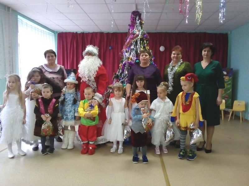 В празднике участвовали: Снегурочка, медвежонок, гномики, петушок, Мальвина и очаровательные снежинки. Сотрудники дошкольной группы продумали и подготовили такой сценарий, что, каждый из детей участвовал в празднике, показывал свои таланты, т.е. был не пассивным созерцателем праздника, а его создателем и участником. Группа у нас разновозрастная, но это не помешало всем вместе танцевать, петь и веселиться от души. И подарки от деда Мороза получили все ребята. И сфотографировались на память. И все остались довольны праздником.