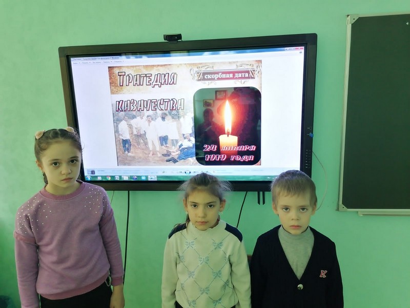 24 января 2022 года в Новороссошанском филиале прошли мероприятия, посвящённые Дню памяти жертв геноцида против казачества. В начальных классах, в 8 классе прошли уроки памяти «День памяти жертв расказачивания». Мероприятие подготовили кл. руководители Воробьева Е.А., Птицына Н.В., Назарова С.А. Учитель истории Тугова О.А. подготовила час истории «Судьба казачества в истории России».