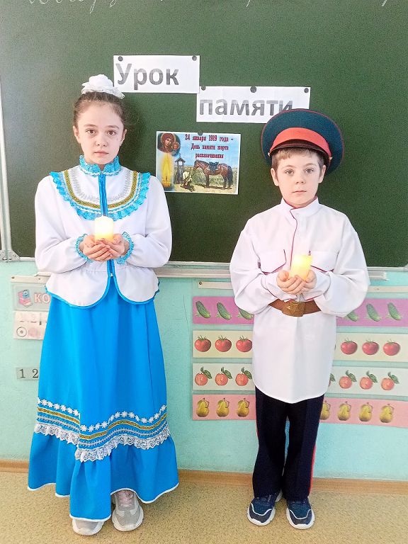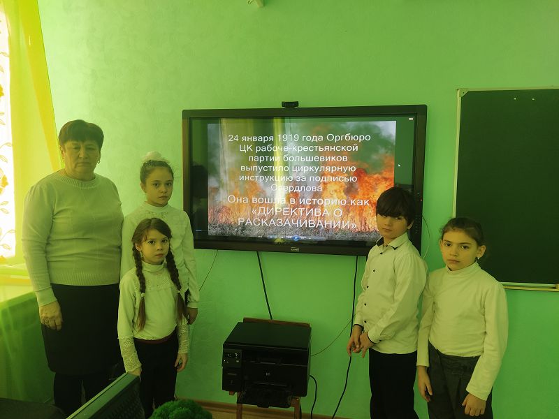 В рамках месячника оборонно-массовой и военно-патриотической работы в начальных классах Новороссошанского филиала прошёл урок памяти «Расказачивание….»