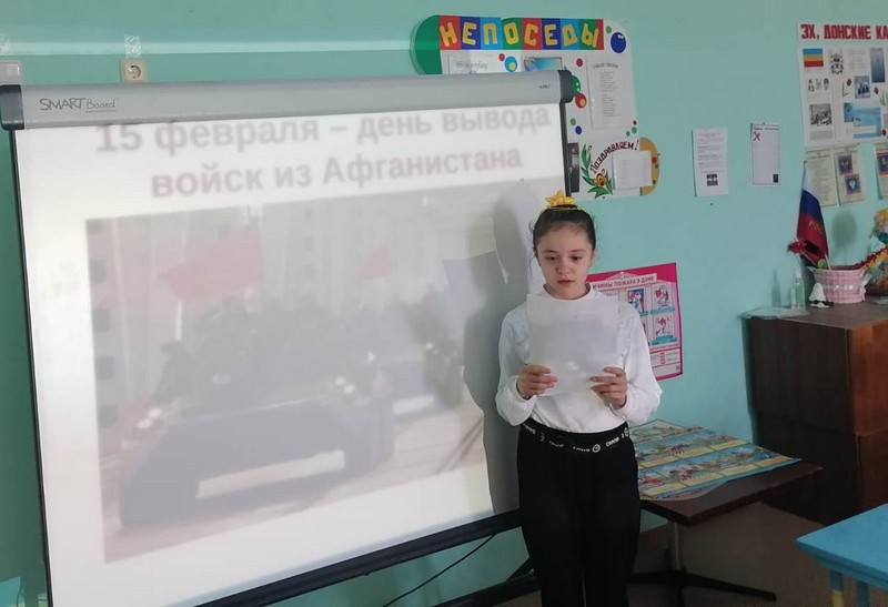 15 февраля 2023 г. в начальных классах Новороссошанского филиала прошли уроки мужества «Афганистан – живая память», посвященные Дню вывода Советских войск из Афганистана.
